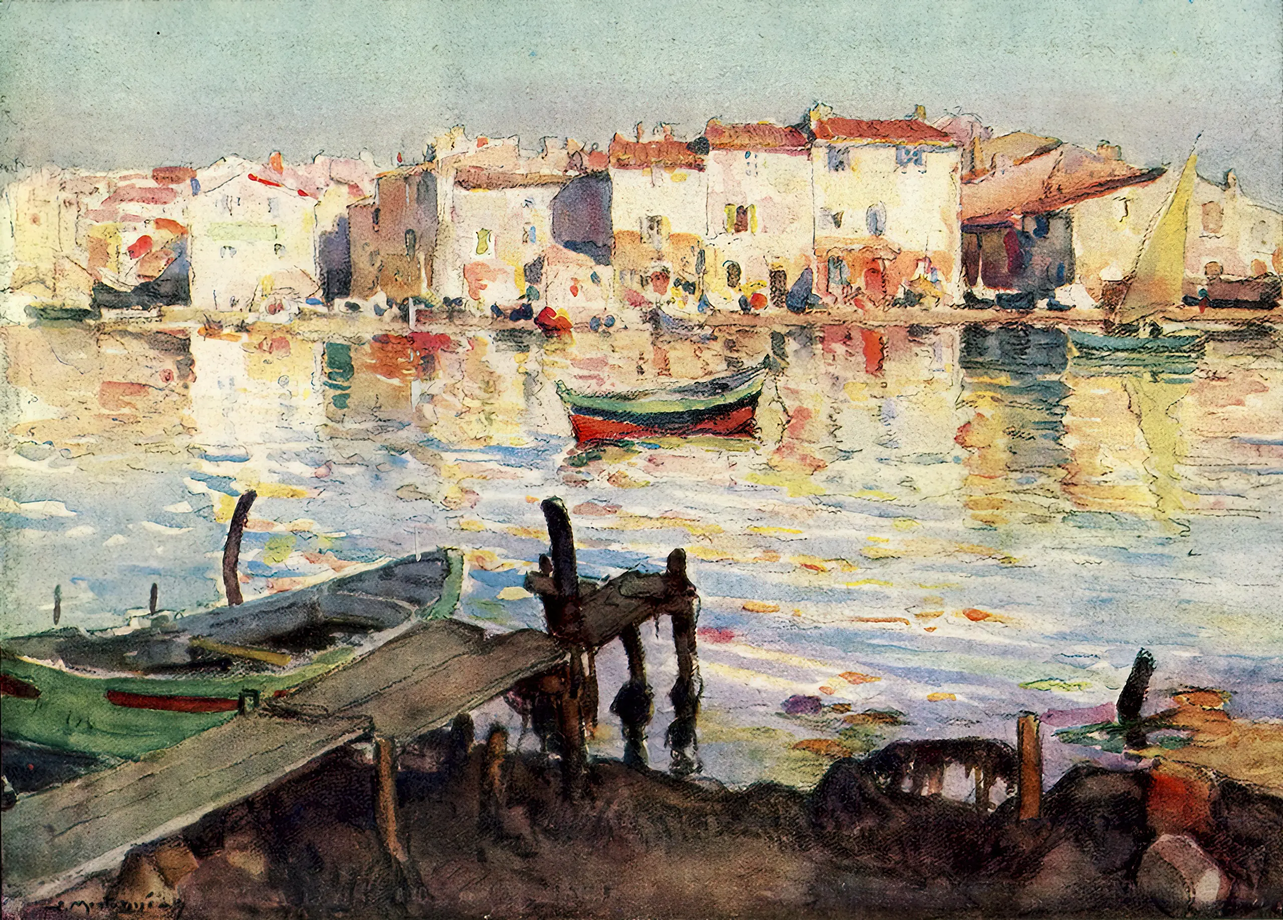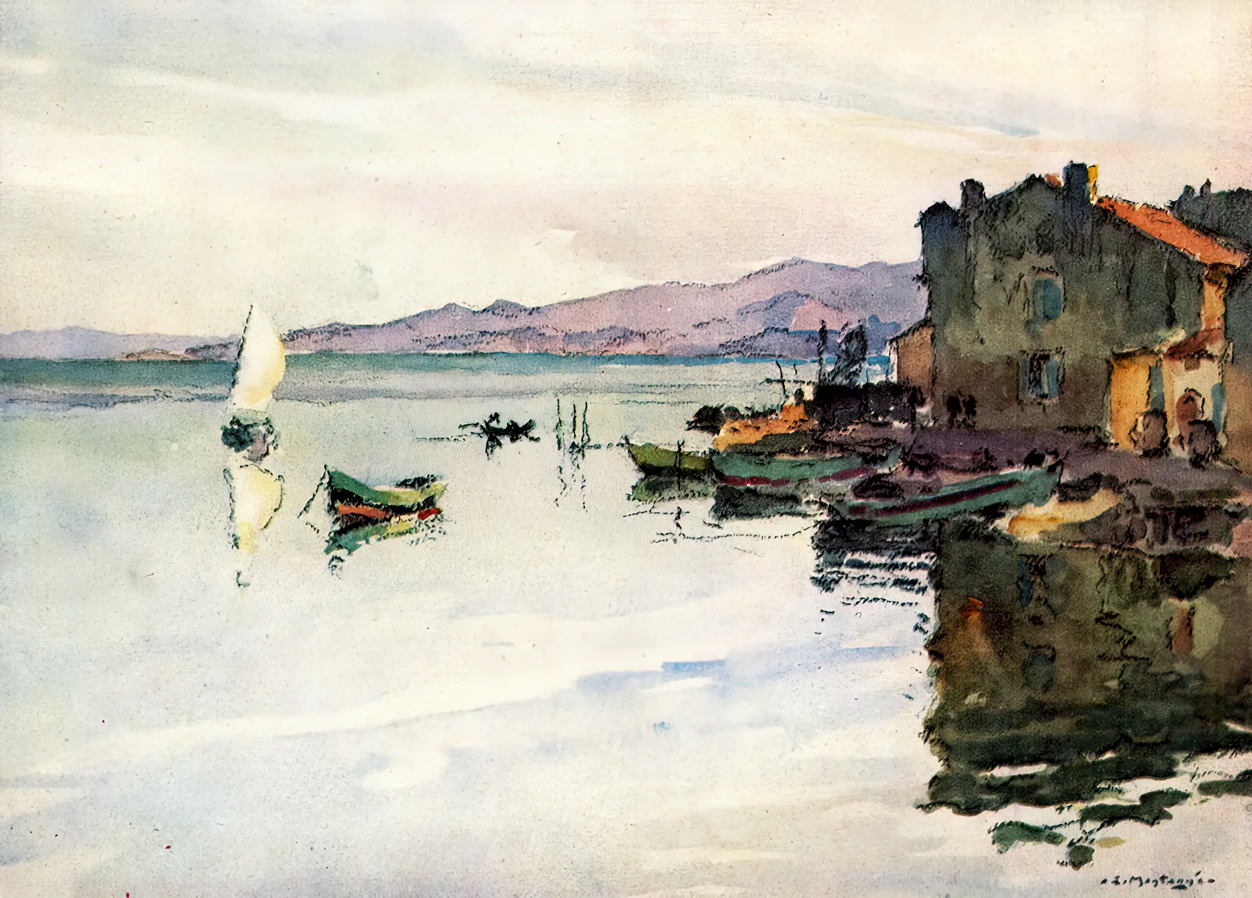 Louis Agricol Montagné (1879–1960), peintre et aquarelliste français. Jeune, il collabore au décor du Train Bleu, Gare de Lyon, puis suit une brillante carrière qui le voit membre du Groupe des Treize et directeur de l’École des Beaux-Arts d’Avignon de 1920 à 1928. Il dirige plusieurs organisations comme le Comité pour la préservation des sites et monuments de Vaucluse, l’Association des paysagistes français et l’Association des aquarellistes français, et fonde le Salon du dessin et de la peinture à l’eau. Cet article a paru avec des reproductions des aquarelles de Montagné dans L’Illustration, numéro 4361 daté du 12 octobre 1926. (N. D. É.) ⬆